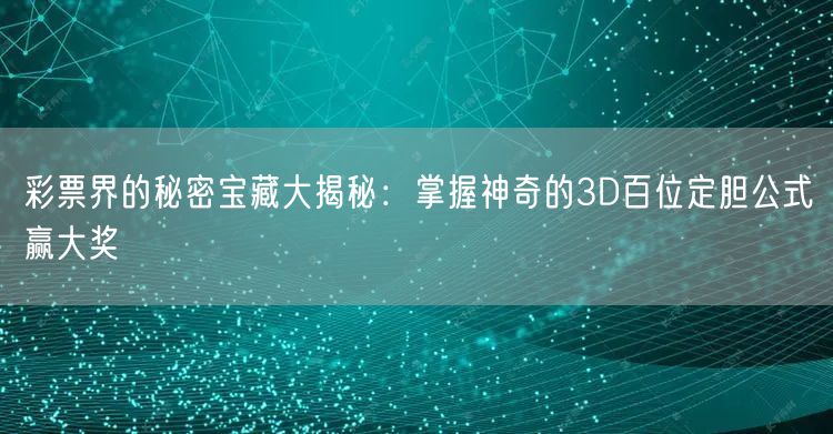 彩票界的秘密宝藏大揭秘:掌握神奇的3D百位定胆公式赢大奖