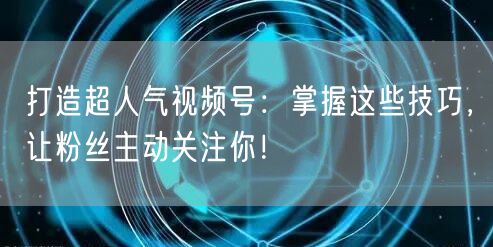 打造超人气视频号:掌握这些技巧,让粉丝主动关注你!