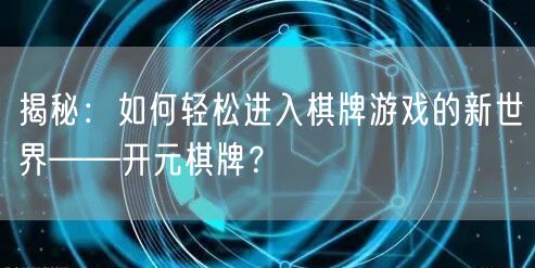 揭秘:如何轻松进入棋牌游戏的新世界——开元棋牌?